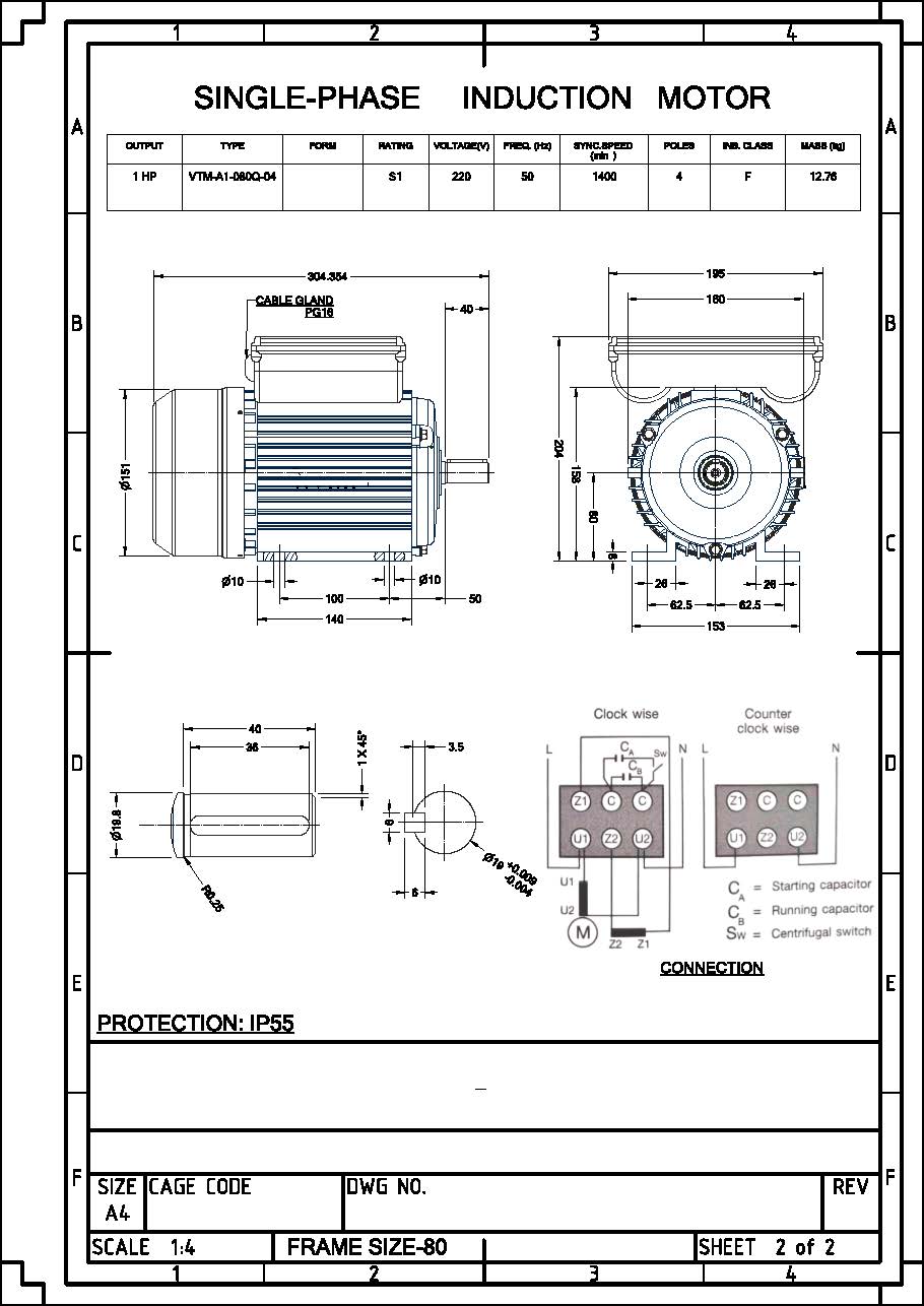 มอเตอร์วาตะ VATA รุ่น VT 1HP ขนาด 1 แรงม้า 4P ไฟฟ้า 1 เฟส 220V IP55