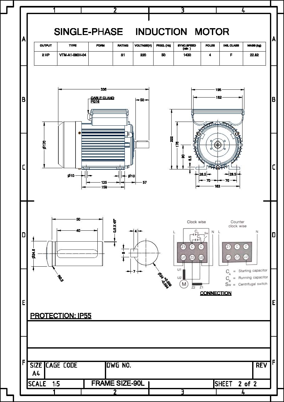 มอเตอร์วาตะ VATA รุ่น VT 2HP ขนาด 2 แรงม้า 4P ไฟฟ้า 1 เฟส 220V IP55