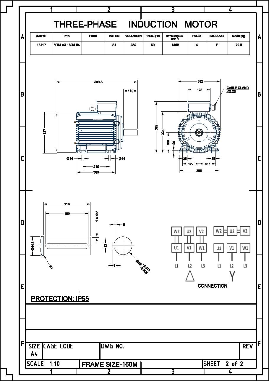 มอเตอร์วาตะ VATA รุ่น VTM 15HP ขนาด 15 แรงม้า 4P ไฟฟ้า 3 เฟส 380V IP55