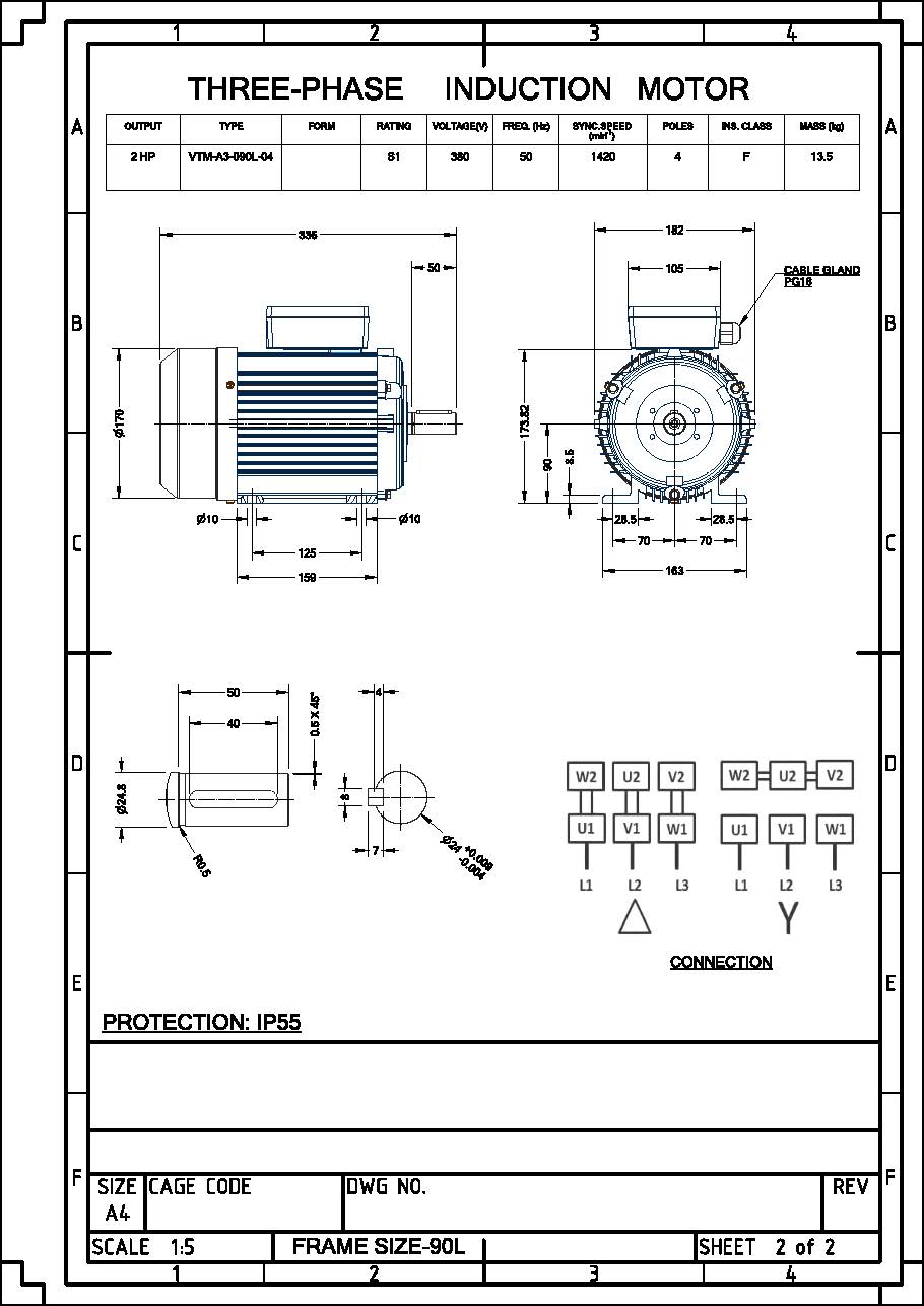มอเตอร์วาตะ VATA รุ่น VTM 2HP ขนาด 2 แรงม้า 4P ไฟฟ้า 3 เฟส 380V IP55