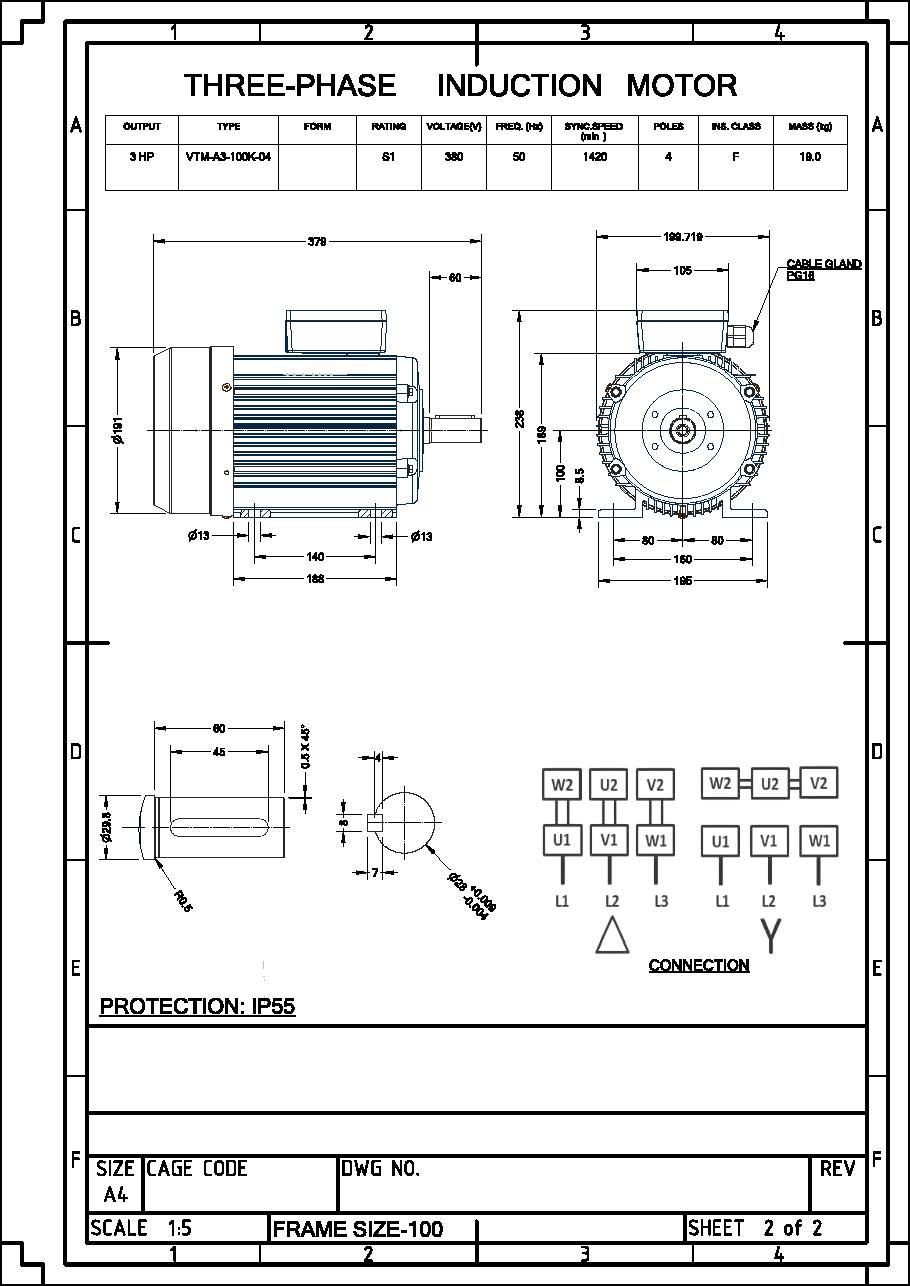 มอเตอร์วาตะ VATA รุ่น VTM 3HP 380V